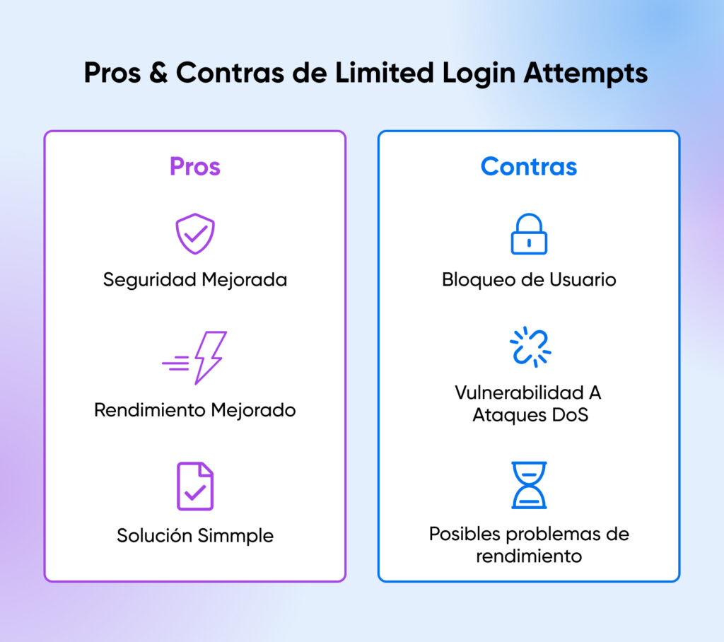 Al establecer un límite en la cantidad de intentos fallidos de inicio de sesión, puedes evitar que las personas intenten iniciar sesión repetidamente. De esta manera, reduces considerablemente las posibilidades de ser hackeado.