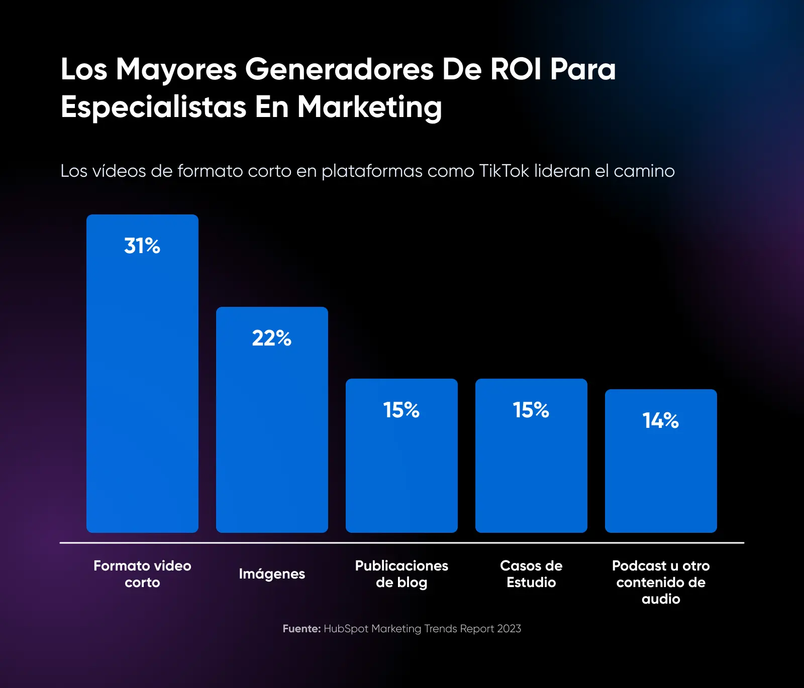 De todos los formatos de video, el video de formato corto tiene el mejor rendimiento en cuanto a ROI, generación de leads y compromiso.