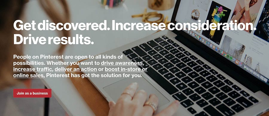 Pinterest es una red social altamente visual. Si tu sitio web o marca se centra en arte, diseño, manualidades, estilo, proyectos DIY, o cualquier otra cosa con un alto impacto visual, prueba una cuenta de negocios en Pinterest para promocionar tu sitio web y negocio.