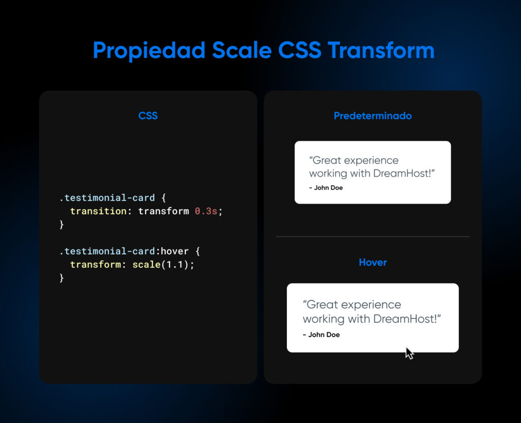 La función scale() te permite crear una sensación de profundidad, énfasis y jerarquía visual dentro de tus diseños.