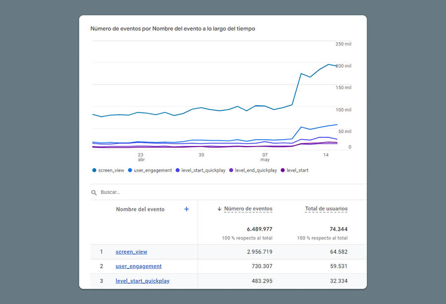 Aquí verás datos detallados sobre las acciones que realizan los visitantes de tu sitio.