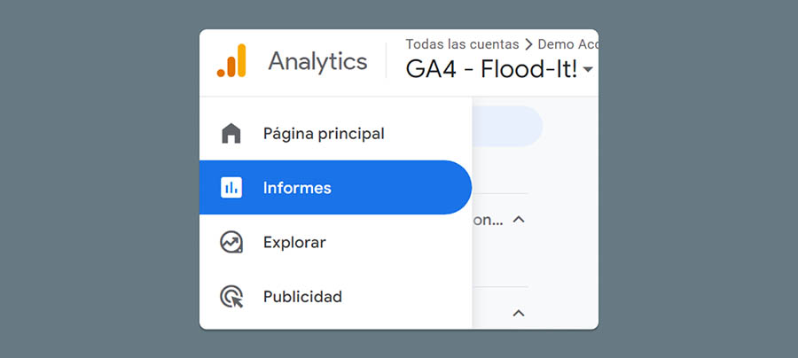 La pestaña de Informes de GA4 es el centro principal para acceder y analizar datos en una propiedad GA4.