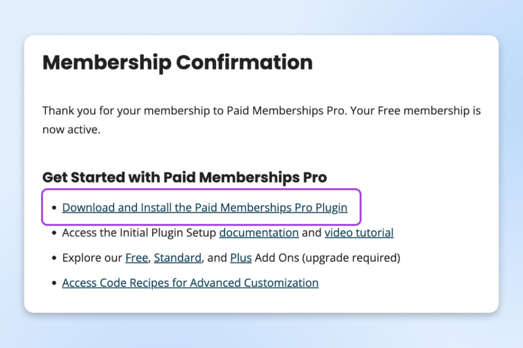 Los pasos para poner en marcha tu sitio de membresía dependerán del plugin que elijas. Para esta guía, usaremos el plan gratuito de Paid Memberships Pro.