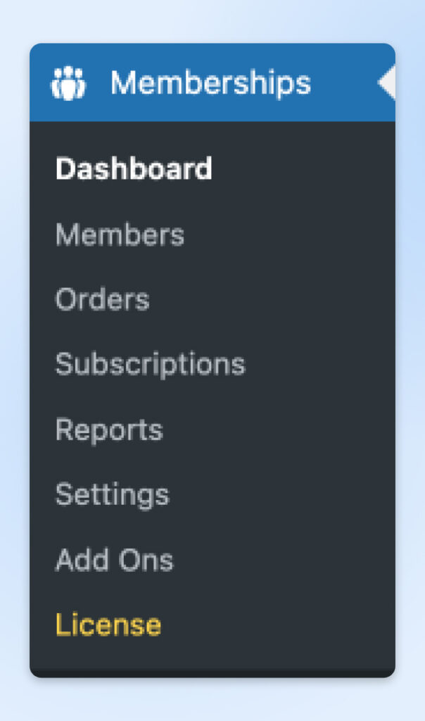 De aquí en adelante, cada vez que necesites ver el panel de administración de tu sitio de membresía o personalizar tu sitio web más, solo visita Memberships en la barra lateral.