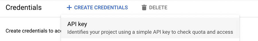 Encuentra la página ‘Credentials’ y selecciona la opción ‘Create Credentials’. Luego haz clic en ‘API key’.