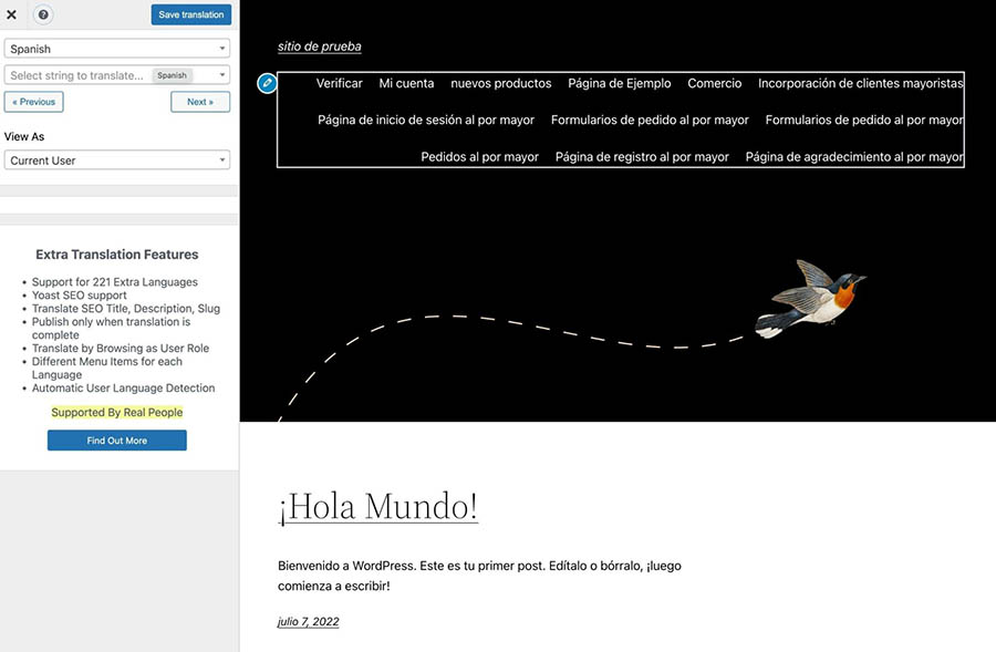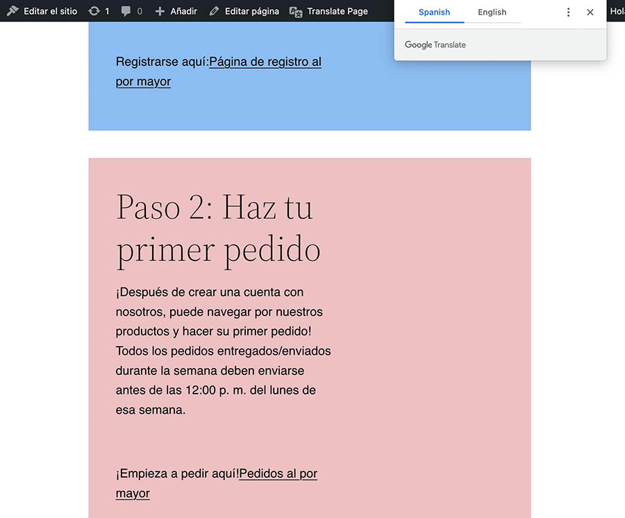 Ahora, cuando los visitantes cambian tu sitio al idioma secundario, podrán ver tus nuevos cambios.
