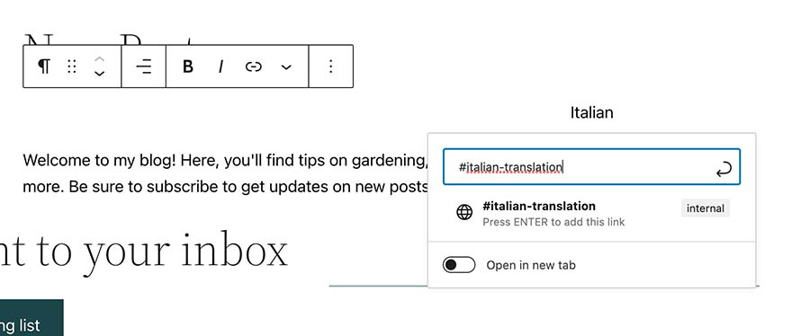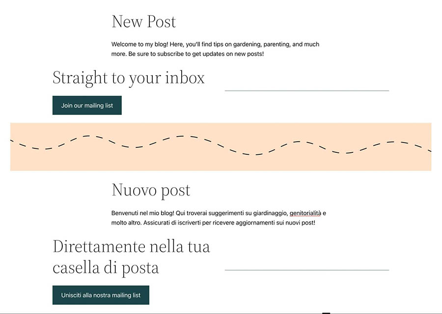 Si no quieres instalar un nuevo plugin, hay otras formas simples de incluir traducciones en tu sitio web. Por ejemplo, puedes mostrar dos traducciones diferentes en la misma publicación. Luego, puedes crear un enlace de ancla para que los lectores puedan saltar más fácilmente al contenido traducido.