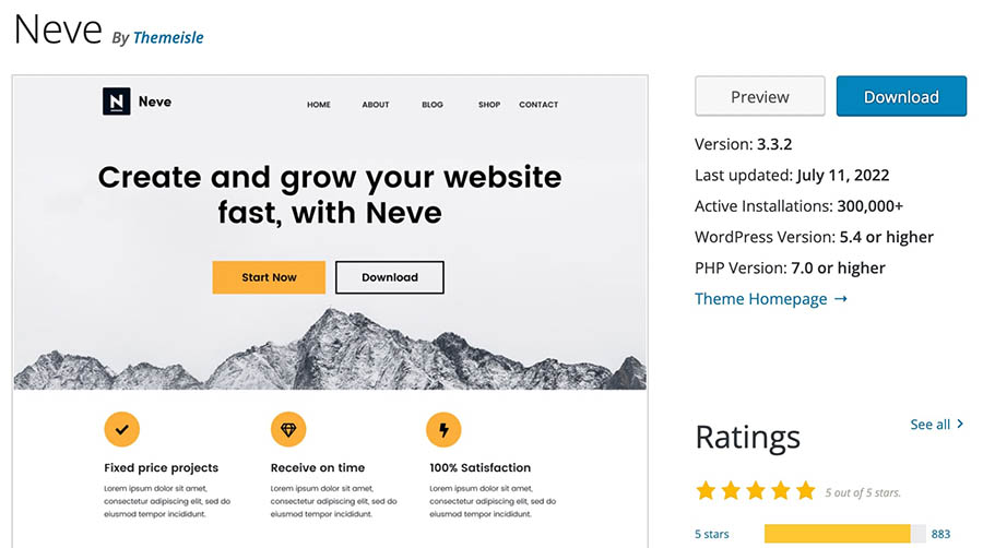 Si estás buscando una opción más asequible, considera el tema Neve. Aunque es un diseño más minimalista, puede adaptarse a casi cualquier nuevo idioma que puedas necesitar.