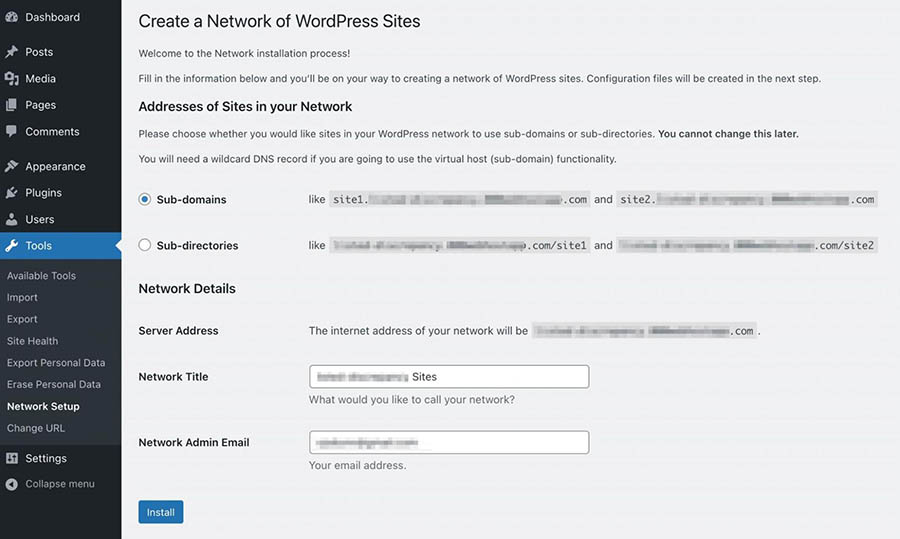Ahora puedes ir a tu panel de WordPress. Dirígete a ‘Tools > Network Setup’.