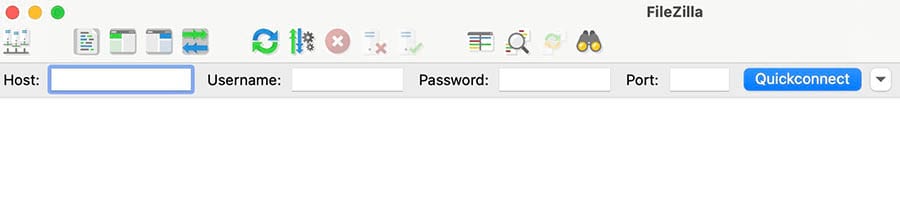 Primero, descarga y abre un programa SFTP, como FileZilla, y conéctate a tu sitio de WordPress utilizando la información de inicio de sesión de tu servicio de hosting.