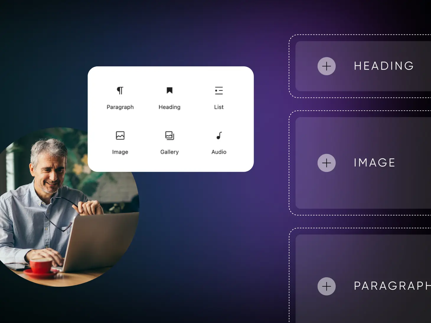 WordPress introdujo el Editor de Bloques en 2019. Desde entonces, en lugar de escribir en una caja en blanco, puedes construir páginas arrastrando y soltando bloques visuales: bloques de texto, bloques de imagen y bloques de botones.