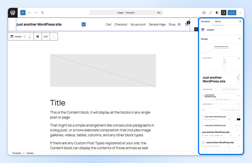 Los temas de edición completa del sitio (Full Site Editing o FSE), también conocidos como temas de bloques, te ofrecen control total de diseño sobre tus encabezados, pies de página e incluso las maquetaciones de tus páginas. Esta flexibilidad, en teoría, significa que podrías instalar cualquier tema y lograr resultados similares.