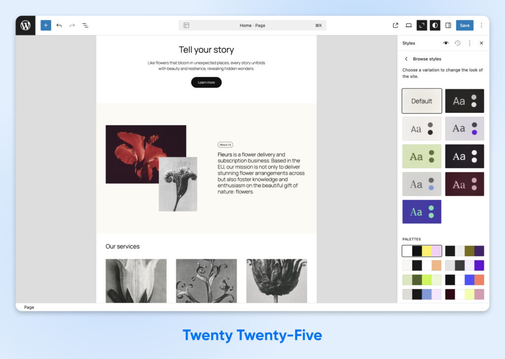 Los diseñadores de temas saben que construir un sitio desde cero es complicado. Por eso empaquetan diseños prediseñados, bloques y estilos enfocados en distintos perfiles de usuario para ayudarte a empezar con ventaja al crear un nuevo sitio web.