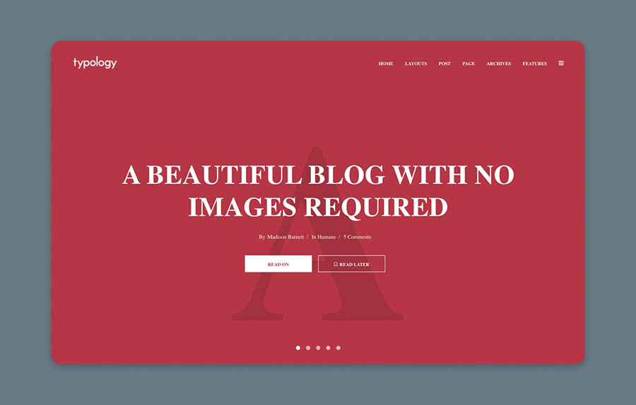 Aunque no fue pensado para escritores en sí, Gutentype presenta tu contenido con mucho estilo. Tiene un diseño limpio, maneja un notable espacio en blanco y una gran optimización para dispositivos móviles.