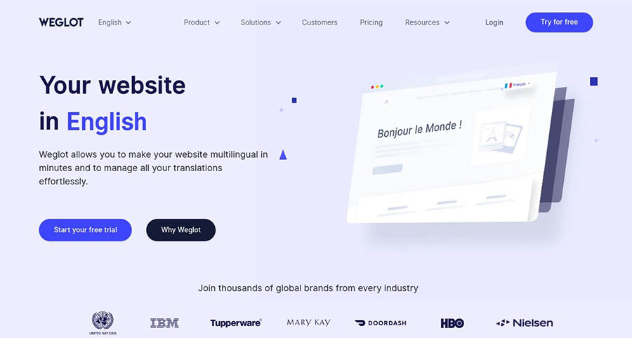 Obtén una clave API de Weglot, instala su plugin, elige tus idiomas y listo.