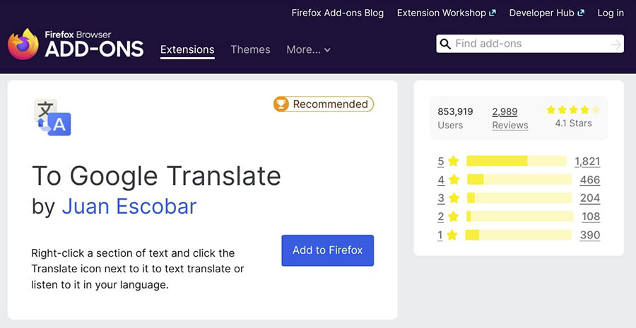 - En Firefox, haz clic en el icono de traducción en la barra de herramientas y selecciona tu idioma de traducción deseado desde el menú desplegable inferior.