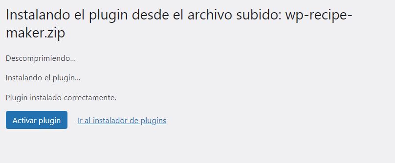 Haz clic en el botón ‘Elegir Archivo’, encuentra la carpeta comprimida del plugin en tu computador y selecciónala (no necesitas extraer los archivos), luego haz clic en ‘Instalar Ahora’. Dale a WordPress un par de minutos para que haga su magia y deberías ver un mensaje de confirmación.