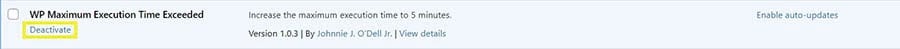 If you don’t know what’s causing the maximum execution time exceeded error, go ahead and deactivate all your plugins and reactivate them individually. Refresh each time to check if you can find the one causing all the fuss.