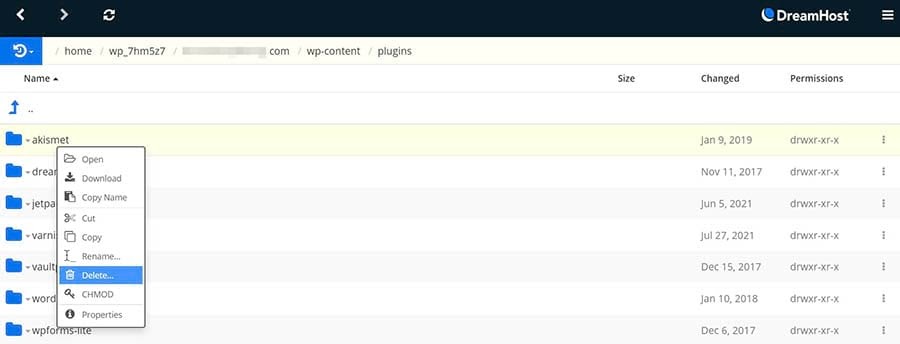 You can also use Secure File Transfer Protocol (SFTP) to remove your plugins or do it with the control panel file manager if you’ve got a fully hosted DreamHost account.