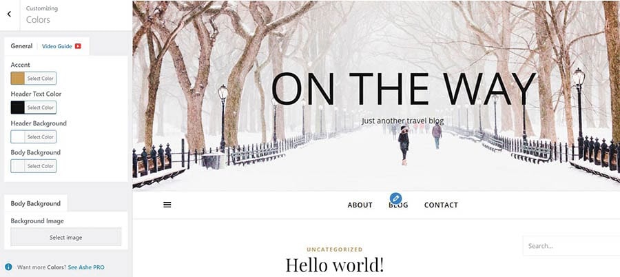 Next, click on Colors. Locate Body Background and click on Select image.