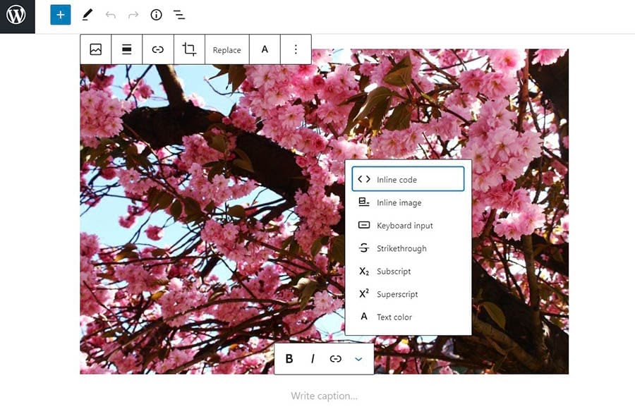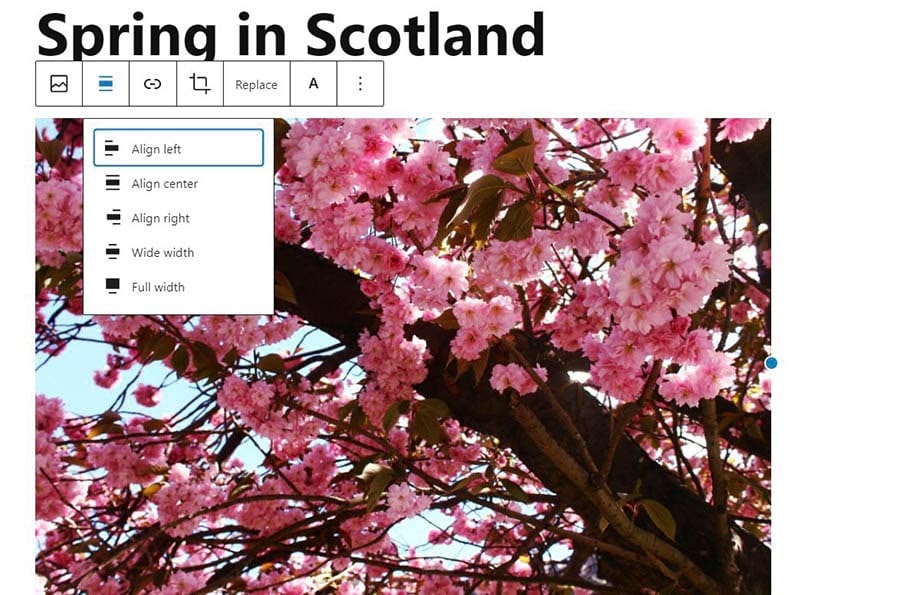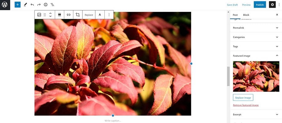 As you can see, this toolbar also gives you other options as well. This includes replacing the image and adding a link to it.