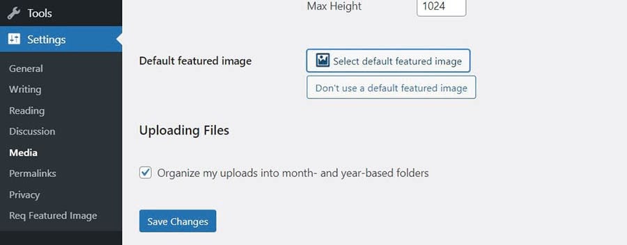 Click on the Select default feature image button and choose your photo. Finally, hit Save Changes at the bottom of the page.