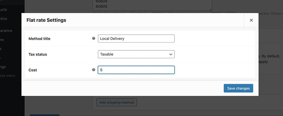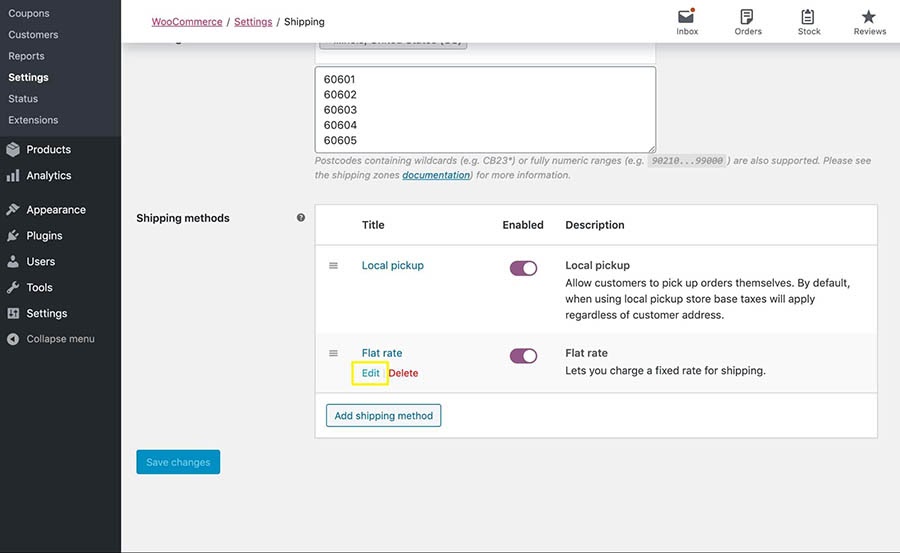 - Click Edit and change the method title to Local Delivery, optionally adding a delivery fee.