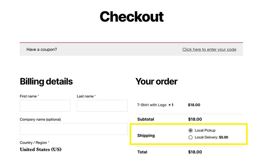 Note: For a more customized pickup setup, consider the Local Pickup Plus WooCommerce extension.