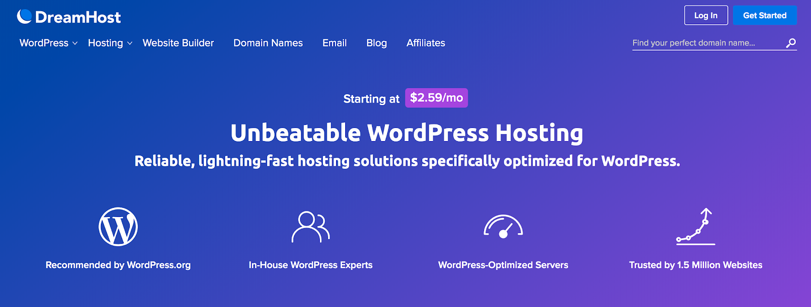 No matter what type of hosting you ultimately decide you need, here at DreamHost, we offer a wide range of WordPress plans. Each package comes with a free SSL certificate, automated backups, and a free domain name. Plus, we’ll automatically install WordPress for you: