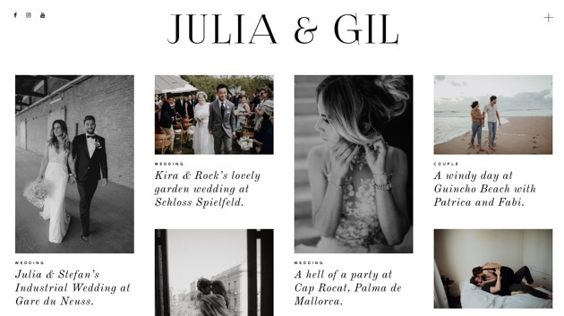 Plus, you can organize your website into different galleries. For example, wedding photographers might want to add photo collections for specific couples: