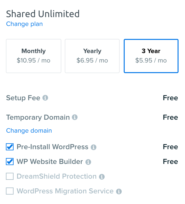 Getting started is easy. You simply need to select “WP Website Builder” as an option when purchasing your DreamHost plan: