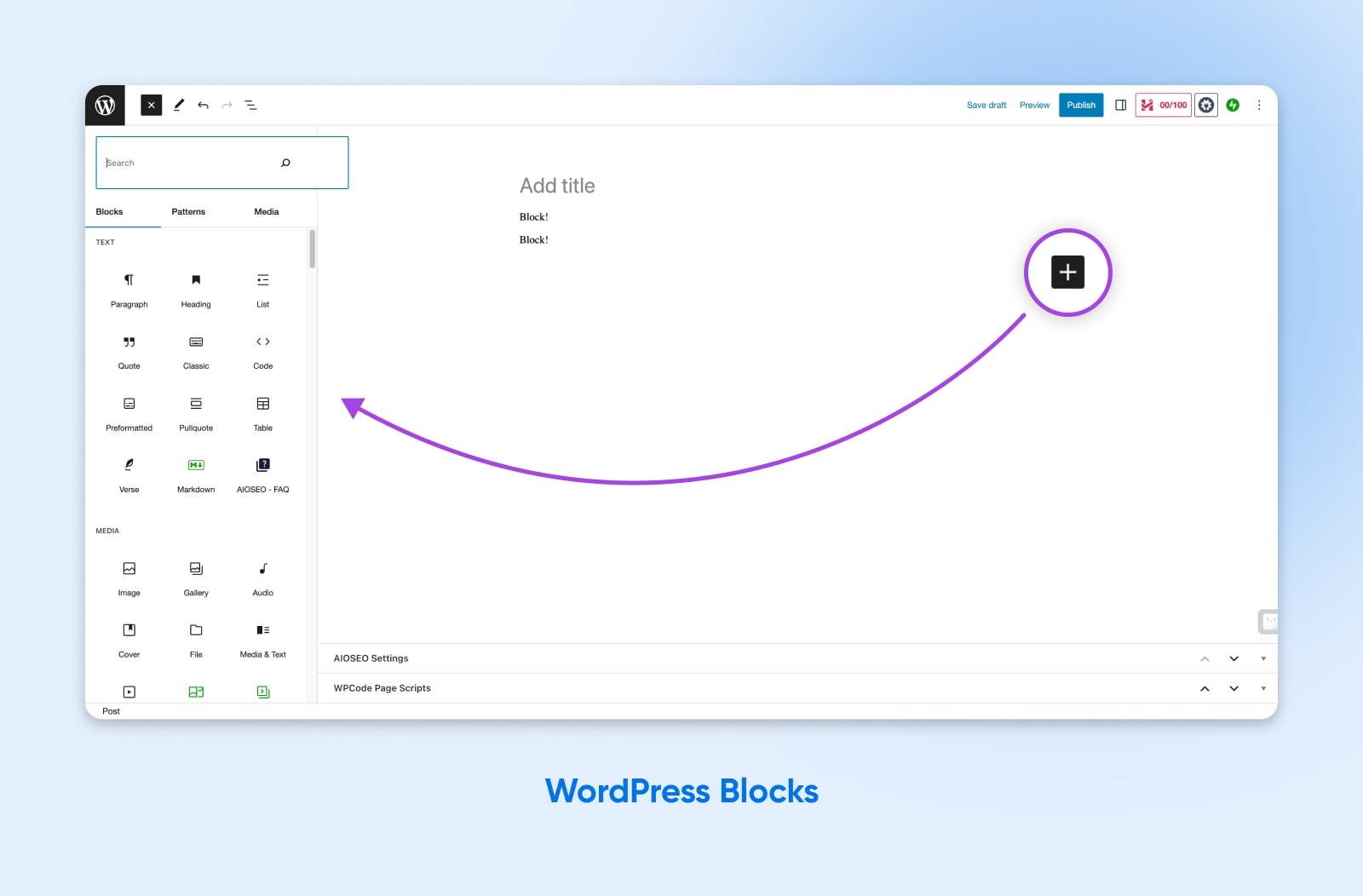 Blocks make it extremely easy to embed outside content and widgets into your WordPress website without having to add a new plugin or third-party addon.