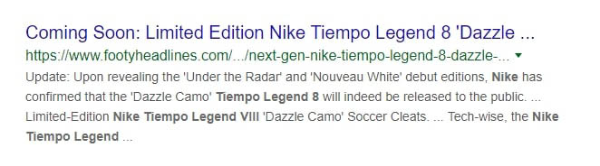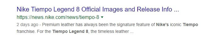 Let’s take a look at some meta description examples for a specific line of shoes. You can tell the meta description below was generated automatically, and it doesn’t give you much to go on: