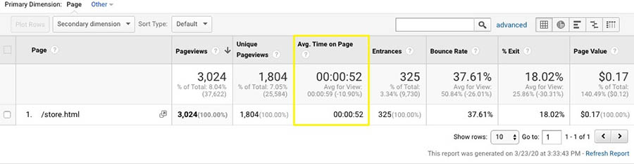 The amount of time a visitor spends on the pages they visit (sometimes called “dwell time”) can be a complicated metric to track. With that being said, Google Analytics does provide a solid breakdown of the averages for each page on your site.
