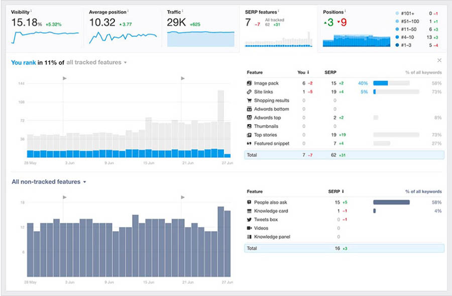 Both of these tools are used by SEO and marketing professionals in all kinds of industries. They offer day-to-day position tracking for your top keywords and a suite of other tools to help you level up your marketing and grow your site’s traffic.