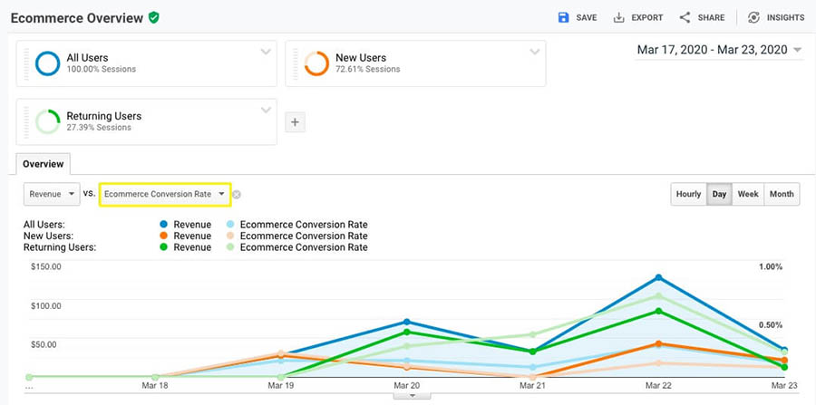Nerd note: If you really want to go down the rabbit hole here, you can segment your traffic even further. Beyond just looking at sessions, users, and pageviews, you can also look at segments like new users vs. returning users.