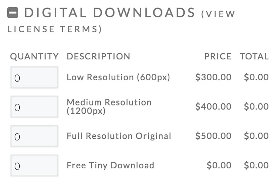 Once it’s installed, users will see a shopping cart appear beside each of your images. Then, when a visitor clicks on one of your images, they’re able to view your pricing information. What’s more, with NextGen Gallery, you can create an unlimited number of price lists, customize your gallery, and adjust the way your images display.