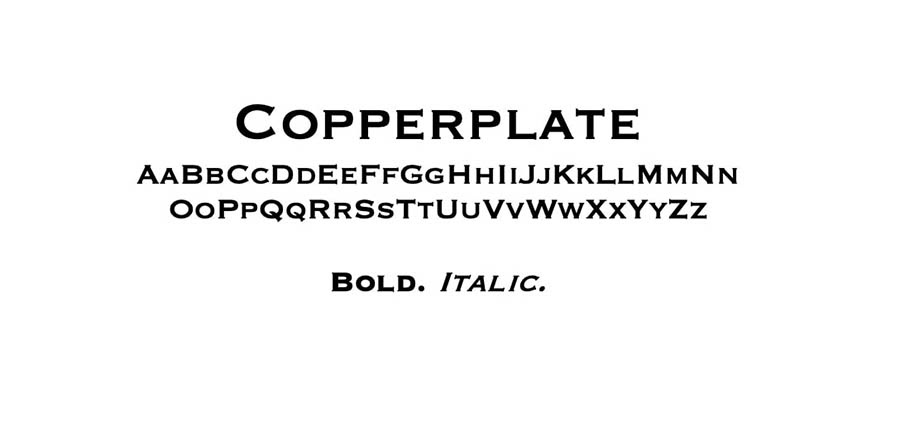 Copperplate is a unique font that combines traditional serif elements with a more decorative, engraved look. It exudes an air of sophistication and formality while maintaining a distinctive style.