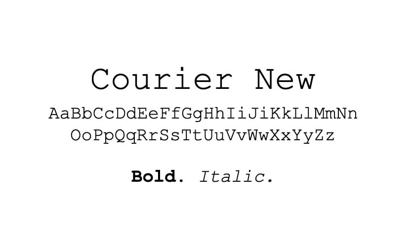 Courier New is a classic monospace serif font designed to look like typewriter text. Like Arial, many email providers use it as their default font. Each character occupies the same amount of horizontal space, making it ideal for maintaining alignment and readability in code and tabular data.