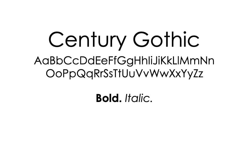 Century Gothic is a geometric sans-serif font with a sleek, modern look. Its clean lines and simple shapes make it visually appealing for digital use.