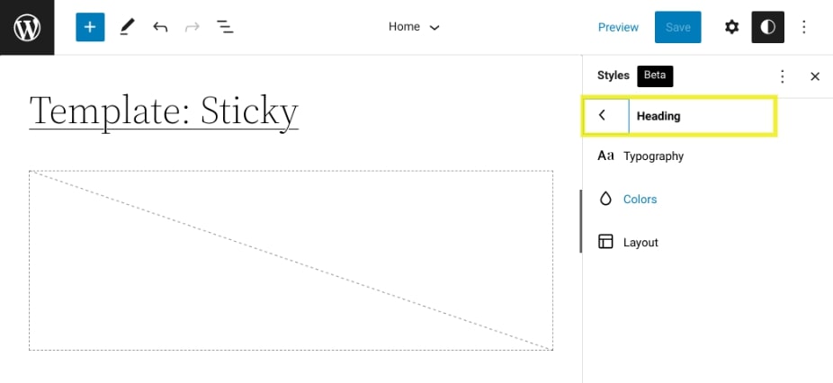 Let’s say you wanted to change the style of your Heading block. You can select Heading from the list, then adjust its Colors and Typography settings: