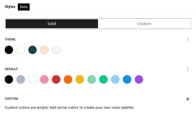 You can also rename the colors to something more identifiable or descriptive than the standard hexadecimal alphanumeric values. You can add custom gradients, apply duo-tone filters to images, and more.