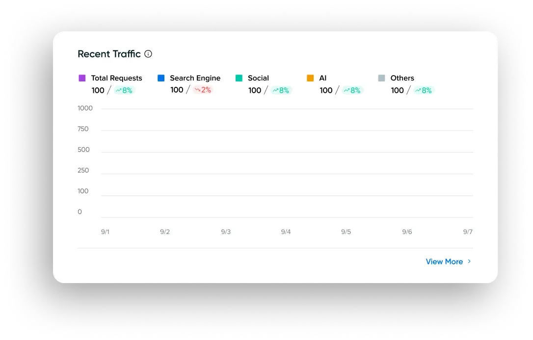 Start evaluating your website performance from day one, with zero configuration needed. The Traffic Dashboard reduces the technical complexity so you can focus on what matters — understanding your traffic and growing your website.