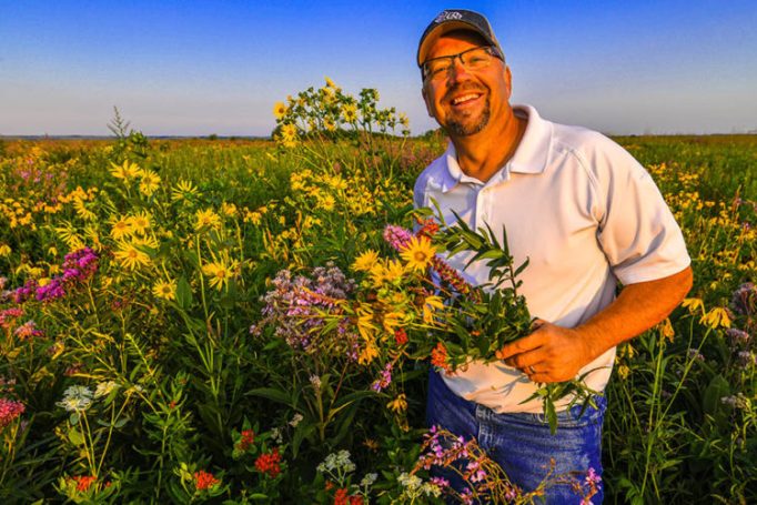“In their mission to develop wildlife habitats and work with private landowners, I saw overlap with pollinators,” he says. “There’s a very clean overlap between what you want for pheasants, quail, honey bees, monarch butterflies, and grassland songbirds. And those overlapping opportunities broaden to include sustainability and water quality, and soil health — pollinators are the glue that connects every single one of those interests.”