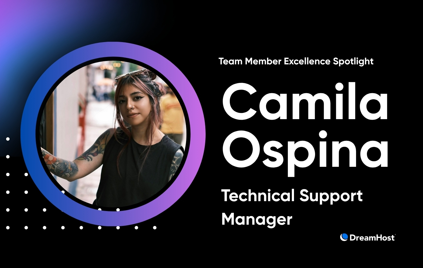 Cuando Camila Ospina se unió a DreamHost hace ocho años, una carrera en soporte técnico no estaba en su radar. Pero con el paso del tiempo, ...