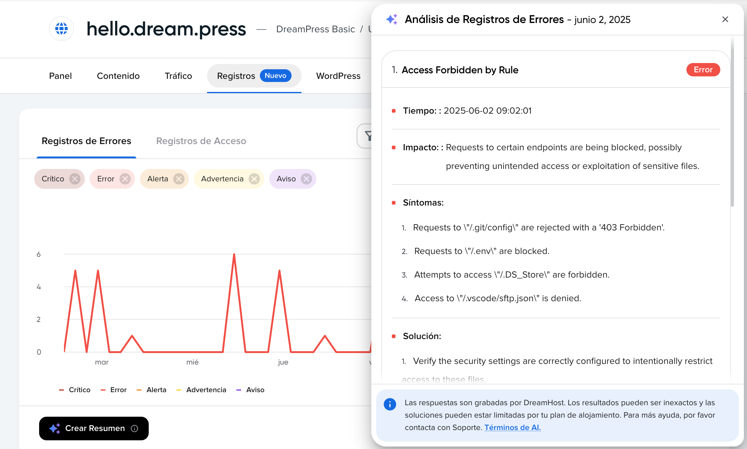 DreamHost ha hecho que sea más fácil que nunca comprender qué está mal en tu sitio y cómo solucionarlo rápidamente. La resolución de pro ...
