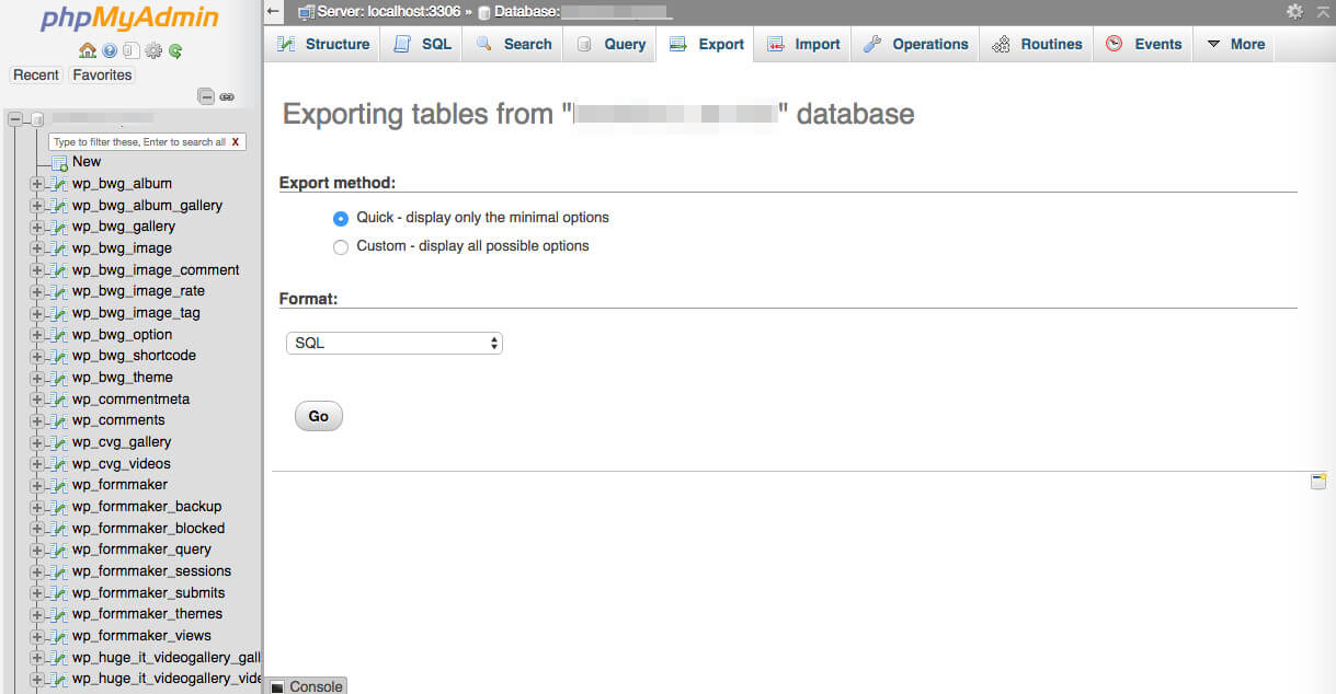 To do this, download your database via the phpMyAdmin tool, which you can find in the hosting panel. Again, the download may take some time. But once it’s done, your manual backup is complete!
