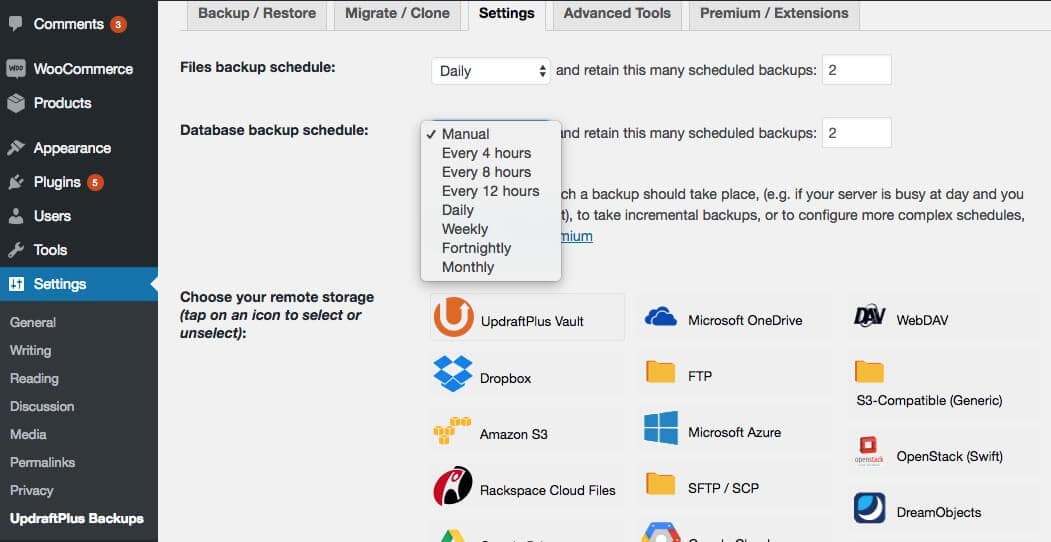 To set up this backup method, you first need to install and activate your chosen plugin. Then, follow the set-up instructions or visit the settings page.