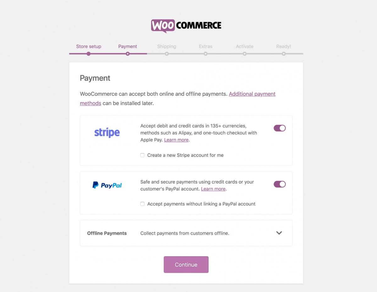 Select the options you want to use, and WooCommerce will install the necessary extensions. You can always remove and add payment methods later.