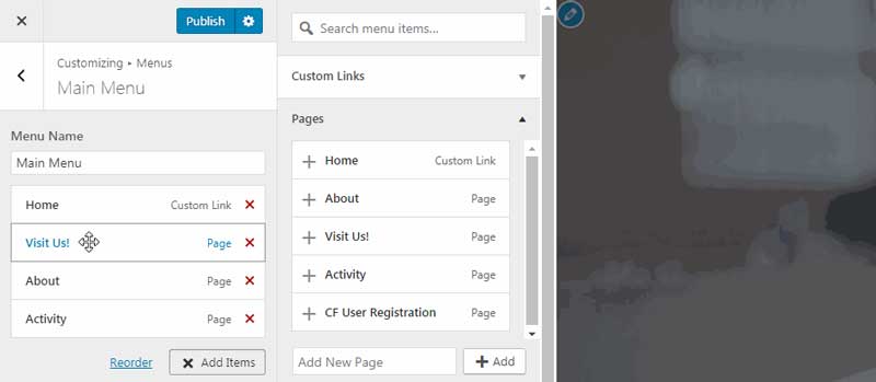 As you add items, you should see them appear on your site in the preview panel. This useful feature lets you see what your menu looks like as you’re building it. Once you’ve selected everything you want to include in your menu, it’s time to start organizing it.